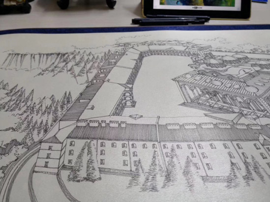 李加鋒的教堂手繪長達(dá)10米(72副教堂)還在精雕細(xì)琢中,期待他的個人展覽。